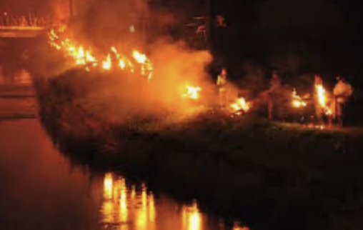 子どもたちは竹灯籠を手に、