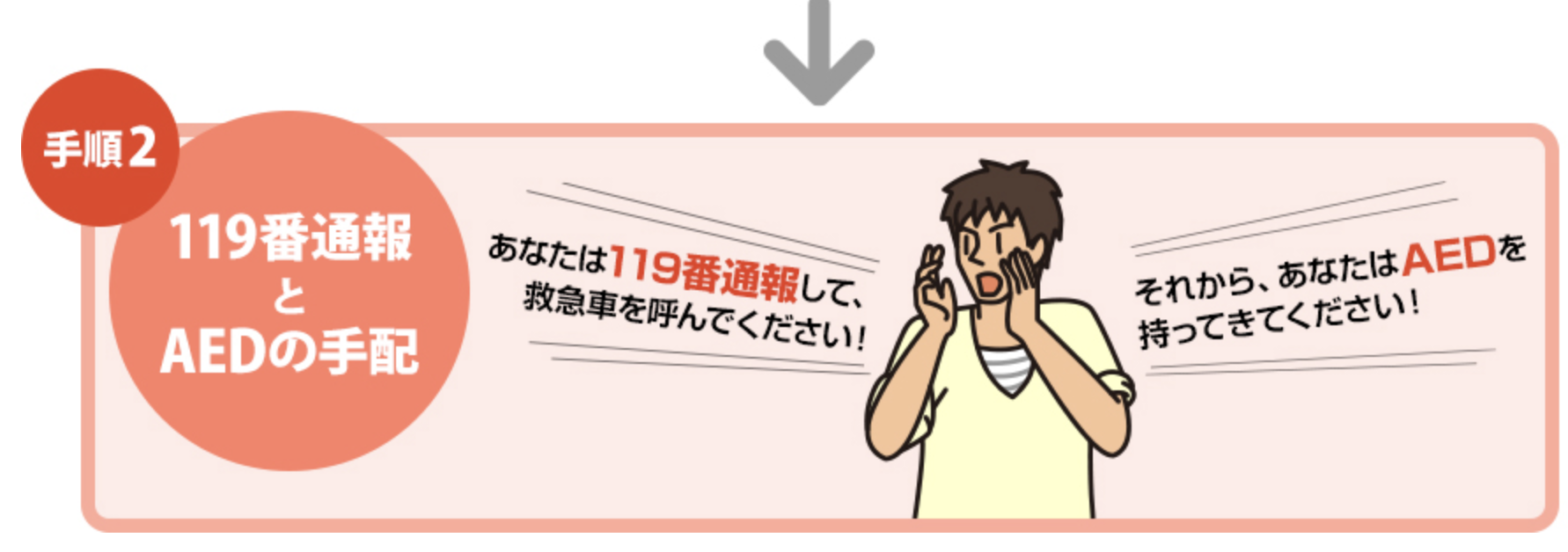 3)助けを呼ぶ・AEDを依頼: